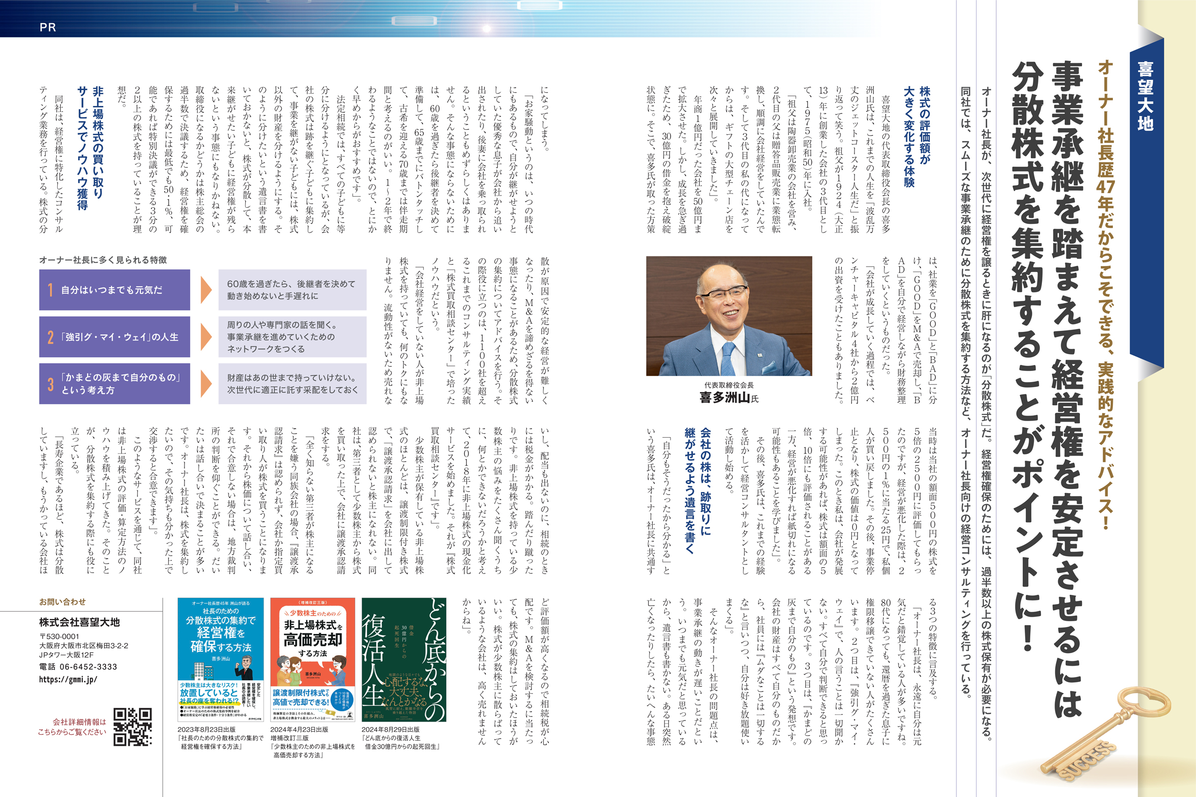メディア掲載履歴 日経トップリーダーに「喜望大地」が掲載されました 日経トップリーダーに、当社の事業承継コンサルティングが掲載されました 。 代表取締役会長 喜多洲山のインタビューが紹介されています 。ぜひご覧ください。